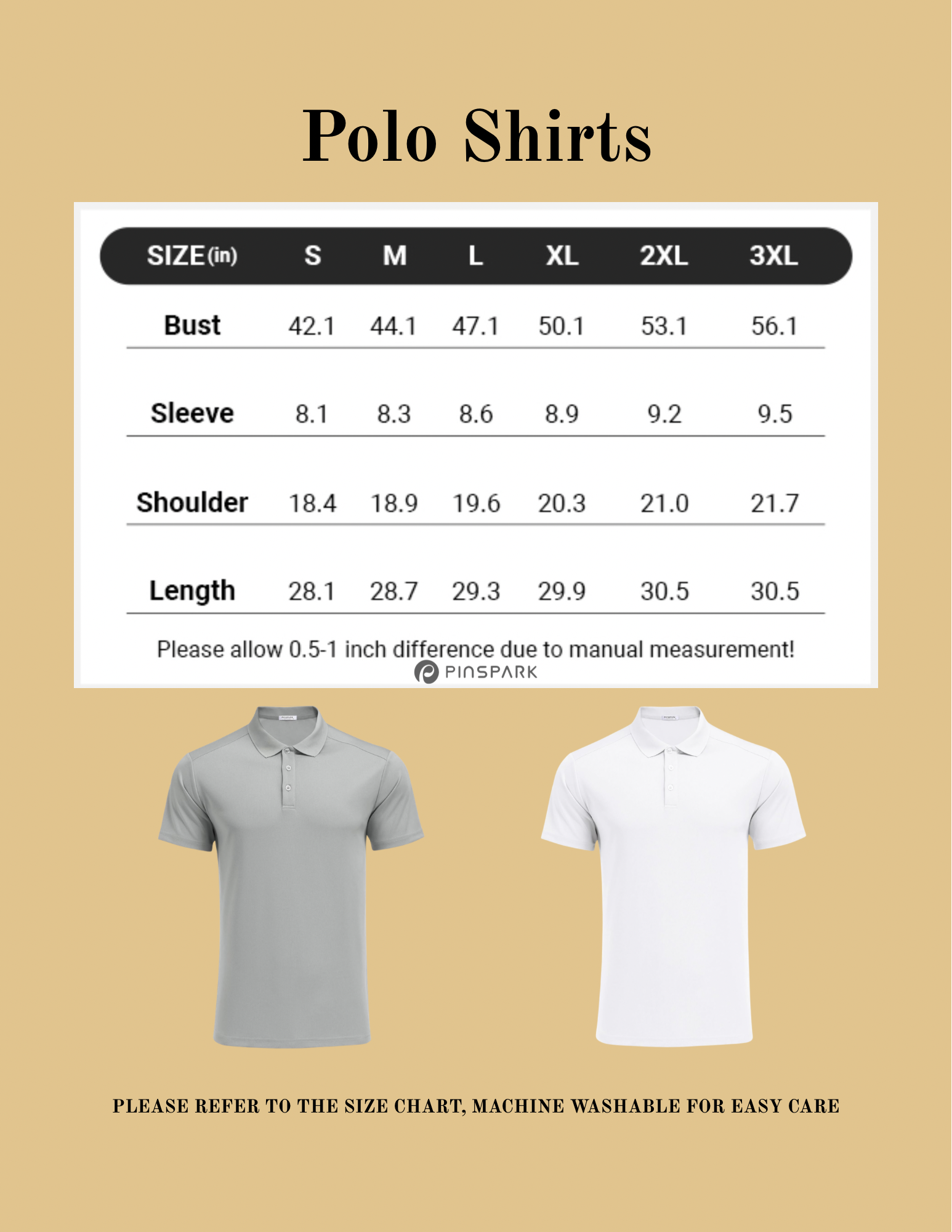 PLEASE REFER TO THE SIZE CHART, MACHINE WASHABLE FOR EASY CARE